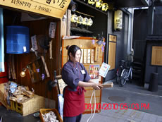 どんどん全国に店舗が増えていく中、何か当社らしい社会貢献ができないものか?と思案している中で、火の用心を復活させようという声が上がりました。最初はスタッフの人数の関係などで出来る店舗だけが独自で行っておりました。しかし、それを聞いた他の全国の店舗から「当店でもやりたい」という声が続々と寄せられるようになりました。「それなら全国の直営店で行おう!」ということになり、揃いの火消半纏を作り、拍子木を作り全国の店での火の用心がスタートしたのでした。店の回りの町内をぐるりとまわってますが、開店時にスタッフが少ない店では店の前で「火の用心!マッチ1本火事のもと!!カーン!カーン!」とさせて頂いております。