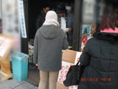 この炊き出しはライフラインが復旧し、食糧などが確保できるとその地域のスタッフが判断するまで各々の地域で続けることができました。仙台のある店では、毎日約1,000食のおかゆやスープなどを配ることができました。当時は町に本当に食糧がなかったのです。店の前には約700名近い行列が連日できました。小さなお店なので作っては盛り、作っては盛りという作業が朝から晩まで続きました。弱音を吐かずに頑張ったスタッフには本当に「ご苦労さん!」と言いたいです。また、大変うれしい出来事がありました。近所のドーナッツ屋さんが「使ってください」と玉子を差し入れて下さったのです。自分のところでは炊き出しが出来ないので炊き出しをしている当店で活用して欲しいということでした。その玉子は玉子スープとなりました。この善意にスタッフは「頑張るぞ!」という更なる勇気が湧いてきたそうです。