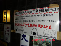 「東日本大震災」で被災の方々へ、震災直後より在庫の米でおむすび等を無料でお配りいたしました。